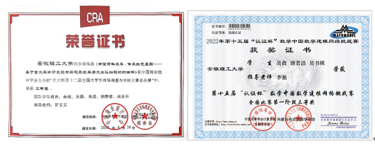在学科竞赛方面,她曾荣获2022年数学建模网络挑战赛第一阶段及五一联赛三等奖、2022年全国大学生数学建模竞赛安徽赛区一等奖、2021年安徽省统计建模大赛一等奖、2022年全国大学生统计建模大赛安徽赛区二等奖、第八届安徽理工大学“互联网+”大学生创新创业大赛校二等奖和正大杯第十二届全国大学生市场调查与分析大赛国家三等奖等。