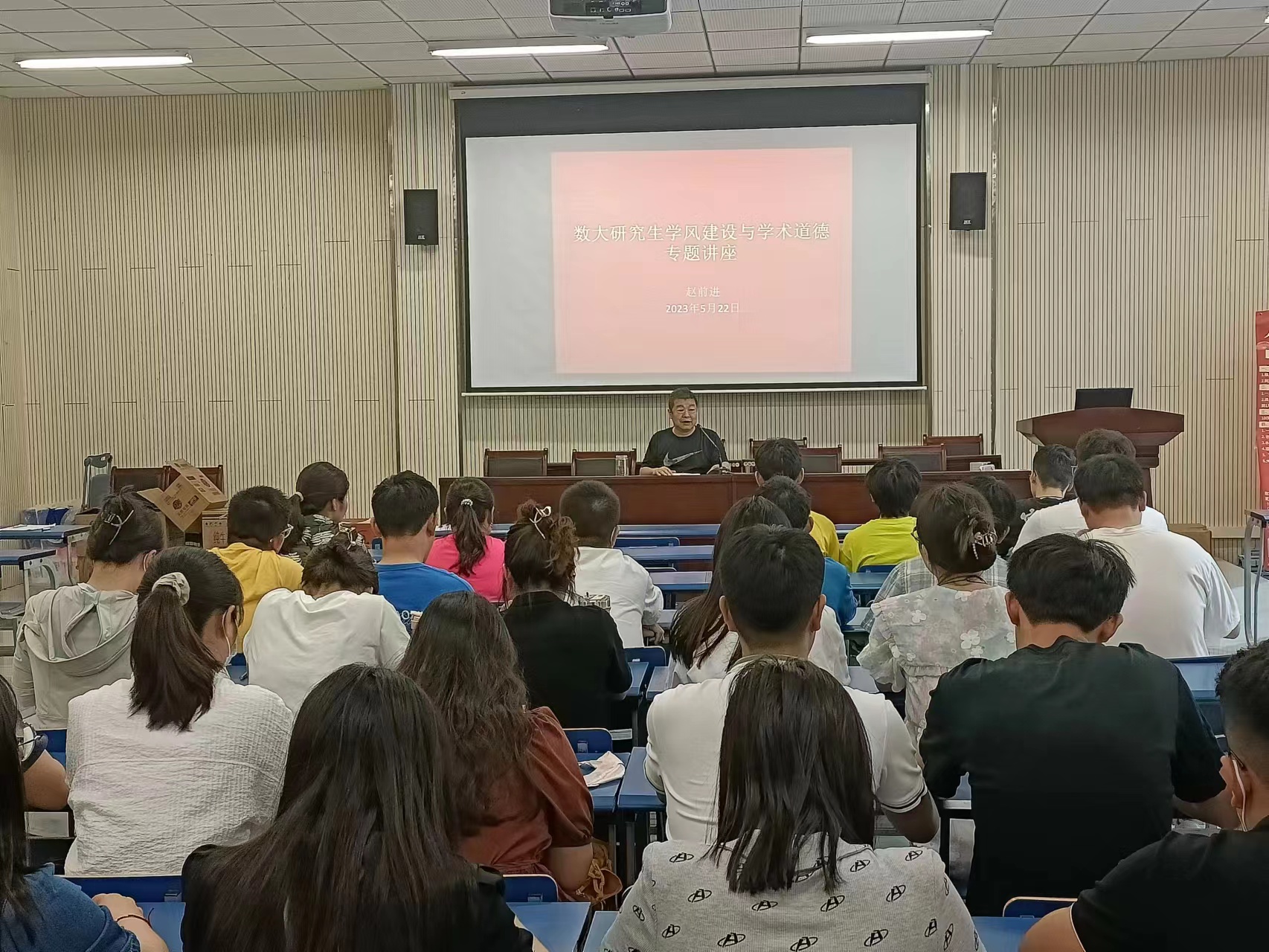 为了让学院研究生充分了解学术研究过程中必须要遵守的准则和规范,推动学院的学术道德建设,2023年5月22号,我院院长赵前进教授为学院全体研究生作关于“学风建设与学术道德”的专题讲座。