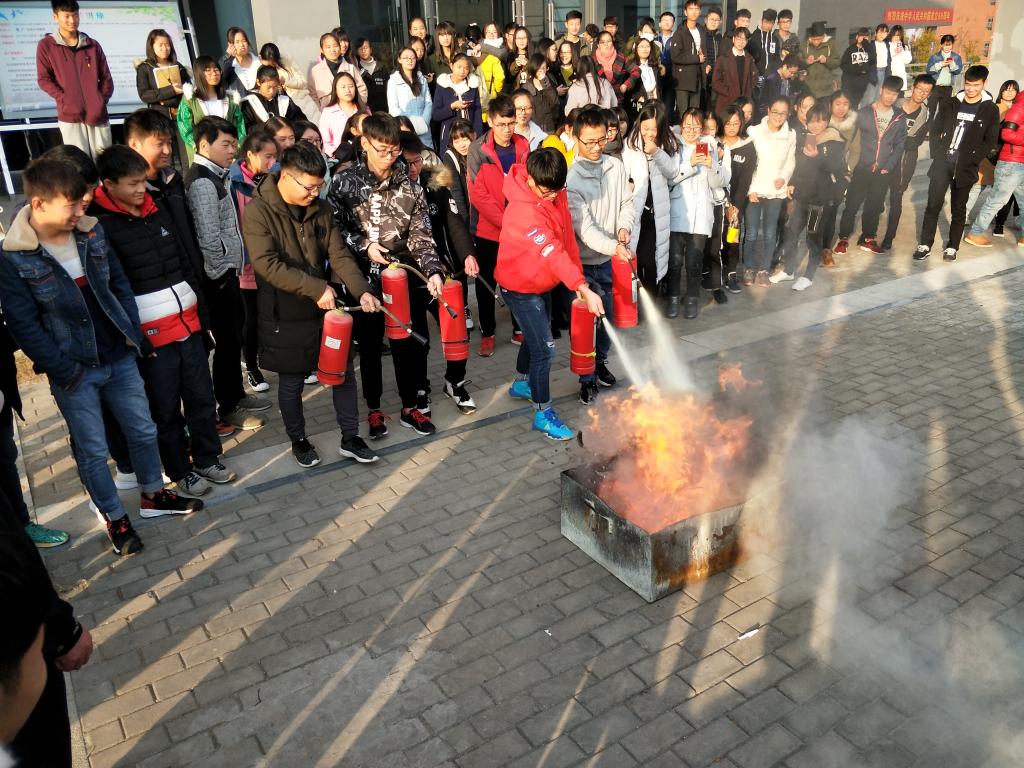 讲座后,卢老师带领同学们于学院楼前亲身体验了灭火器的实际使用,让同学们更加直观地感受到火灾现场的紧张气氛,为同学们上了一堂生动的实践课。