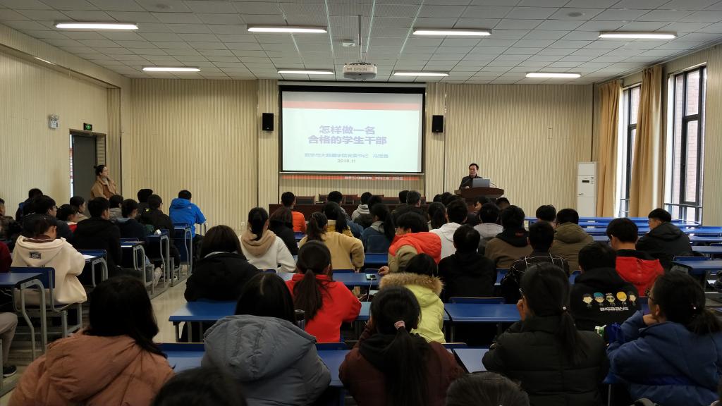 仪式之后,学院党委书记冯定昌给学生们上了本次培训的第一课《怎样做一名合格的学生干部》。冯定昌给学生剖析了学生干部的精髓所在,如何利用学生干部这个身份一步步把自己发展成为学生骨干,如何做一名合格的学生干部。