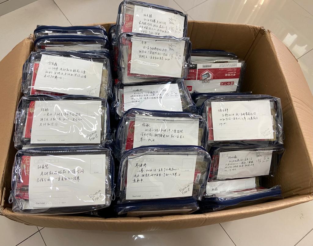 会后,学院领导和老师为学生发放考研“加油包”,辅导员汤圣军老师针对每一名同学不同特点,将自己对考研学生的殷切嘱托和美好祝愿亲笔写成一张张卡片,放在“加油包”中,希望他们能够带着学院的希望走向“考场”。