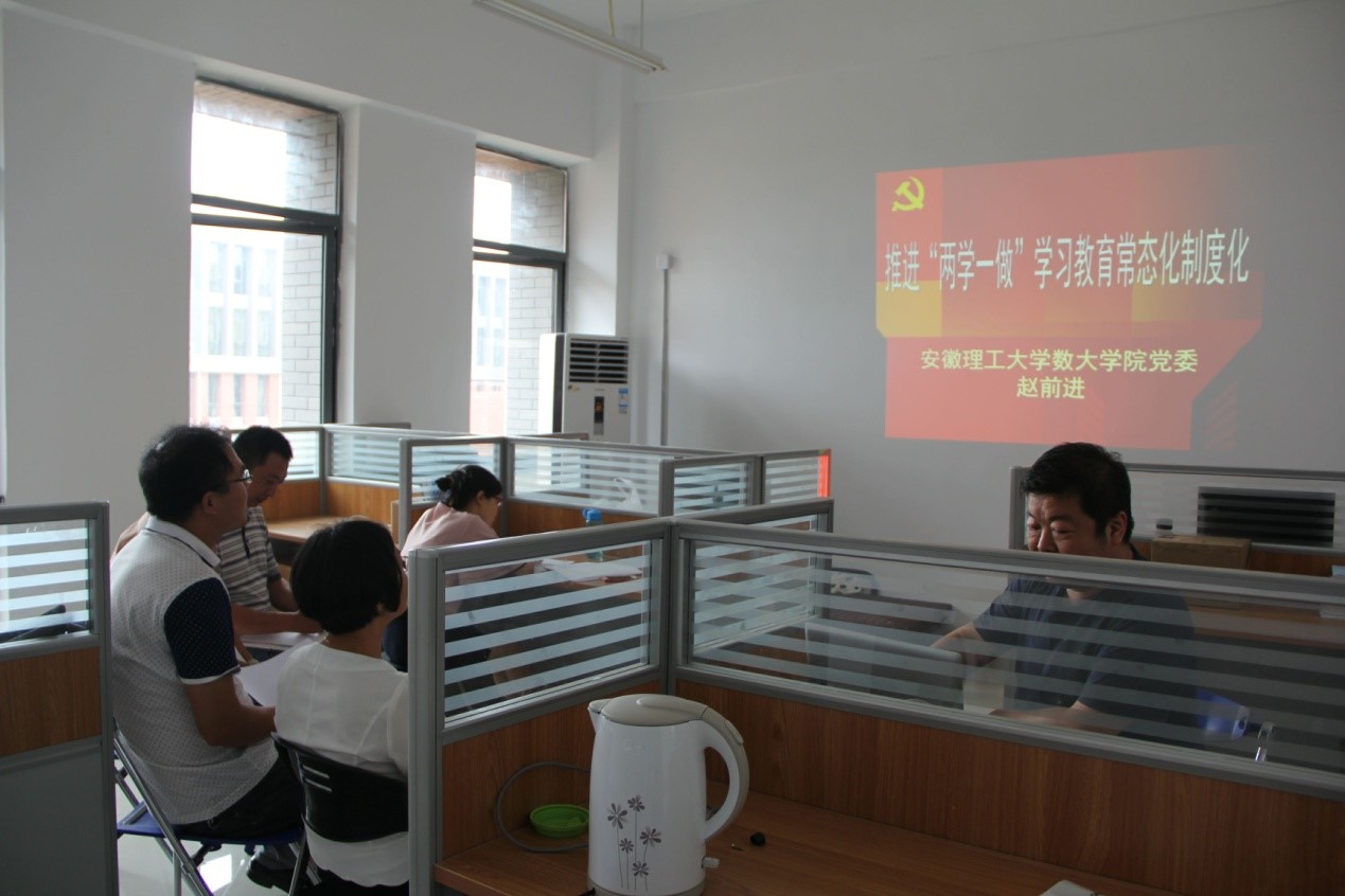 6月14日下午,beat365应用数学系党支部召开全体党员大会,学院党委书记赵前进以“推进“两学一做”学习教育常态化制度化”为题讲授专题党课。